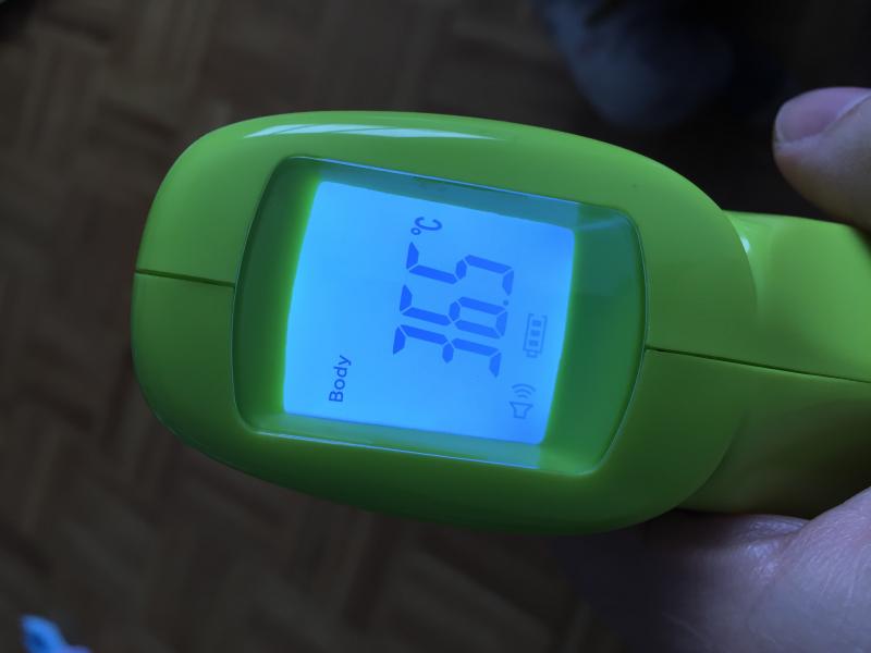 Al principio cuesta coger el punto para hacer la medición bien, pero una vez que le coges el truco es muy rápido. Sirve tanto para temperatura del cuerpo como para medir la temperatura de la habitación o incluso la temperatura del agua de la bañera tan sólo con cambiar el modo en un botón.