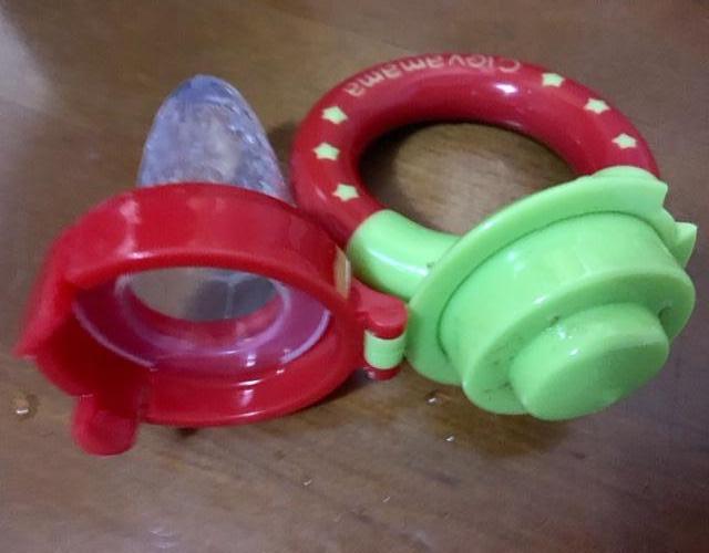 Me parece un buen producto para la iniciación del bebé en los sabores de las frutas. Se compone de una parte dura de plástico con un asa fácil de sujetar para el bebé y una tetina de silicona, libre de BPA, con agujeros lo suficientemente grandes como para que pueda salir jugo y pequeños trozos que no atraganten al bebé.