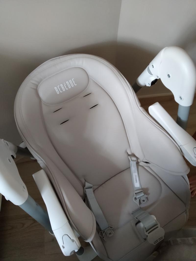 Muy práctica. Facil de limpiar, plegada ocupa poco en la cocina o donde la guardéis. Diseño moderno y elegante, color neutro. Bandeja extraíble pars poder limpiarla. Totalmente reclinable, se puede poner al bebé des de pequeño a la alturs de la mesa para que esté entretenido. - Ventajas: