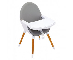 Trona de madera apta desde los 6 meses. Permite regular la altura mediante sus patas pudiendo ser utilizado como trona o asiento junior y con un diseño anatómico y minimalista.