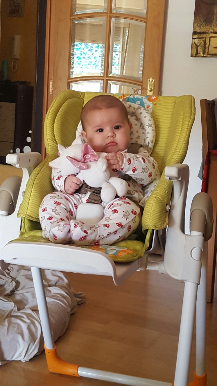 Las compramos a los 4 meses, a pesar de tener otra, porque aún no se mantenía sentada e ibamos a empezar con la cuchara. Si lo hubiera sabido la hubieramos cogido antes ya que se reclina mucho y puedes usarla a modo de hamaca y con el reductor.