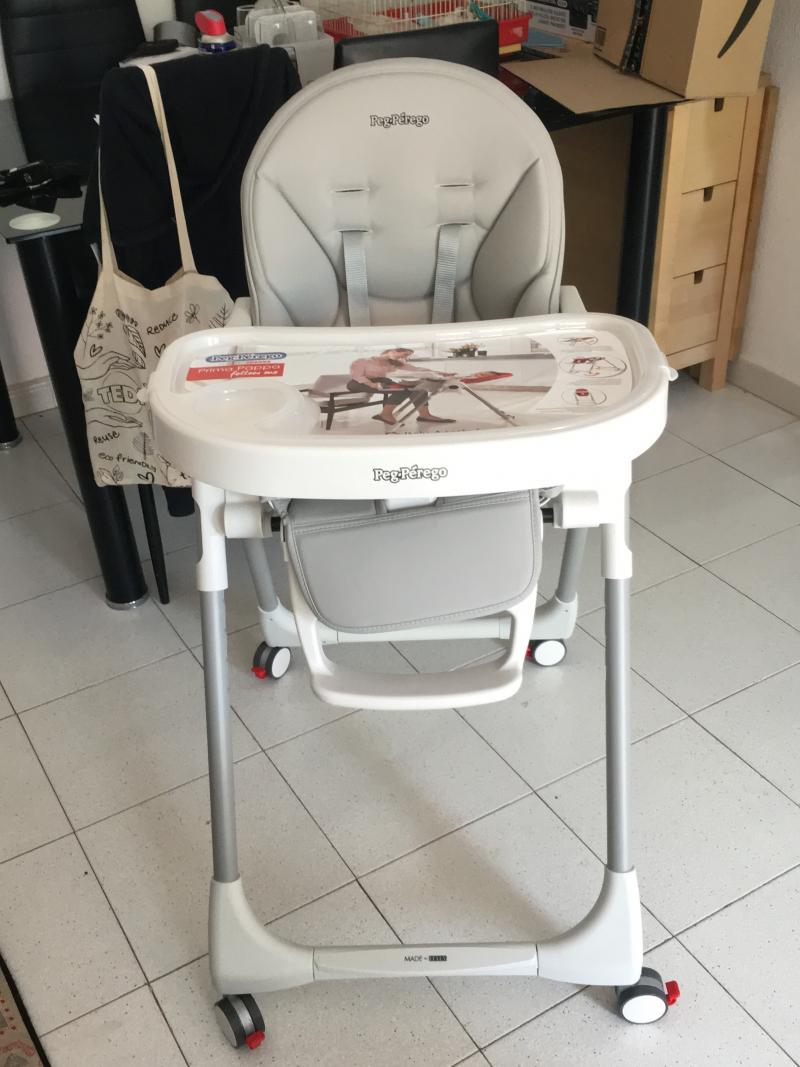 Es una silla muy buena, yo le compre los accesorios que cuelgan y el peque estaba más rato, fácil de subir de altura con el peque sentado y de desplegar, la funda se quita fácil y a la lavadora. La bandeja doble muy practica. Muy bien la verdad. - Ventajas:
